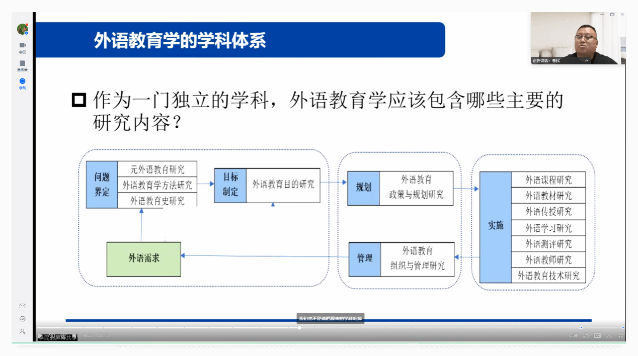 During the discussion session, Professor Li Min elaborated on the compatibility of foreign language education with other languages, how foreign language teachers can conduct classroom-based research by integrating teaching practices, as well as issues related to the disciplinary structure of foreign language education and the disciplinary affiliation of subject-based teaching (English).