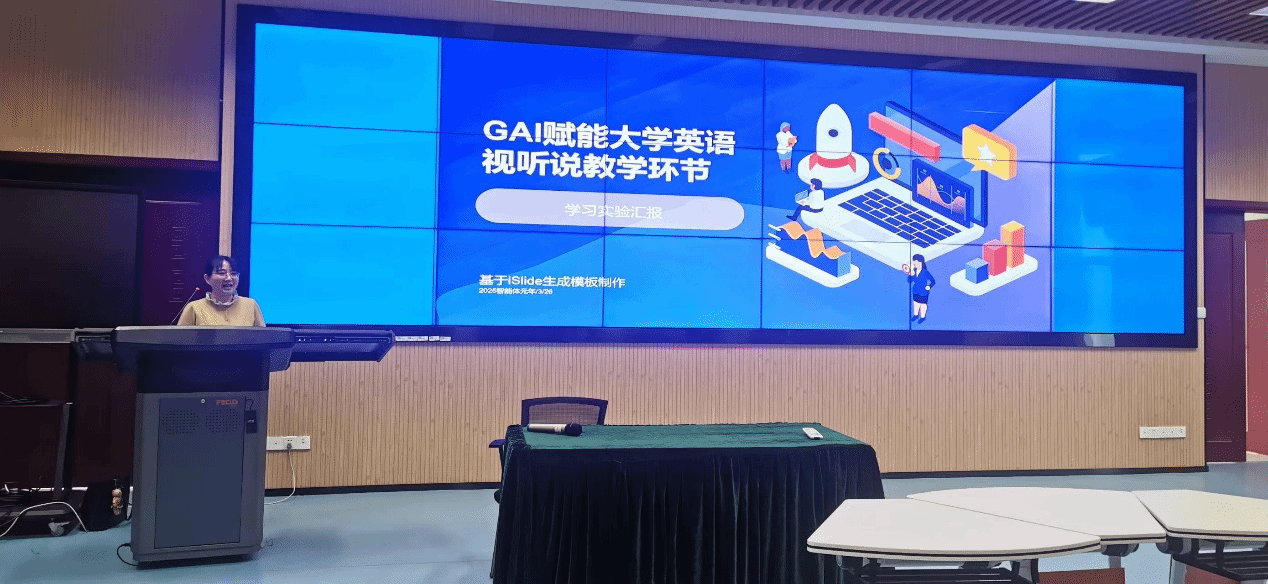 Ms. Li Chao compared different models of generative artificial intelligence from both domestic and international contexts, analyzing their respective strengths. He then explored how generative AI can empower the teaching of college English viewing, listening, and speaking from four perspectives: listening instruction, speaking instruction, critical thinking cultivation, and cross-cultural competency development.